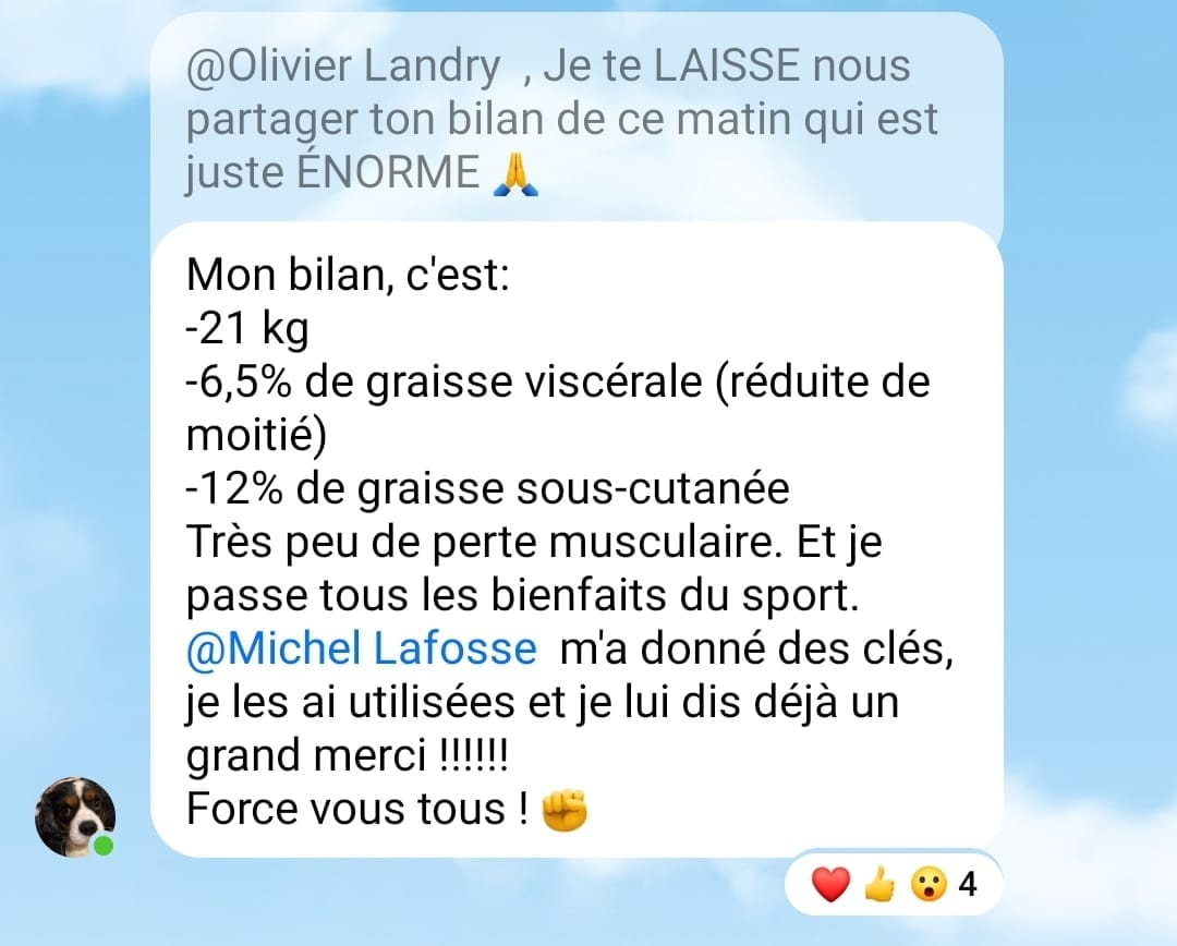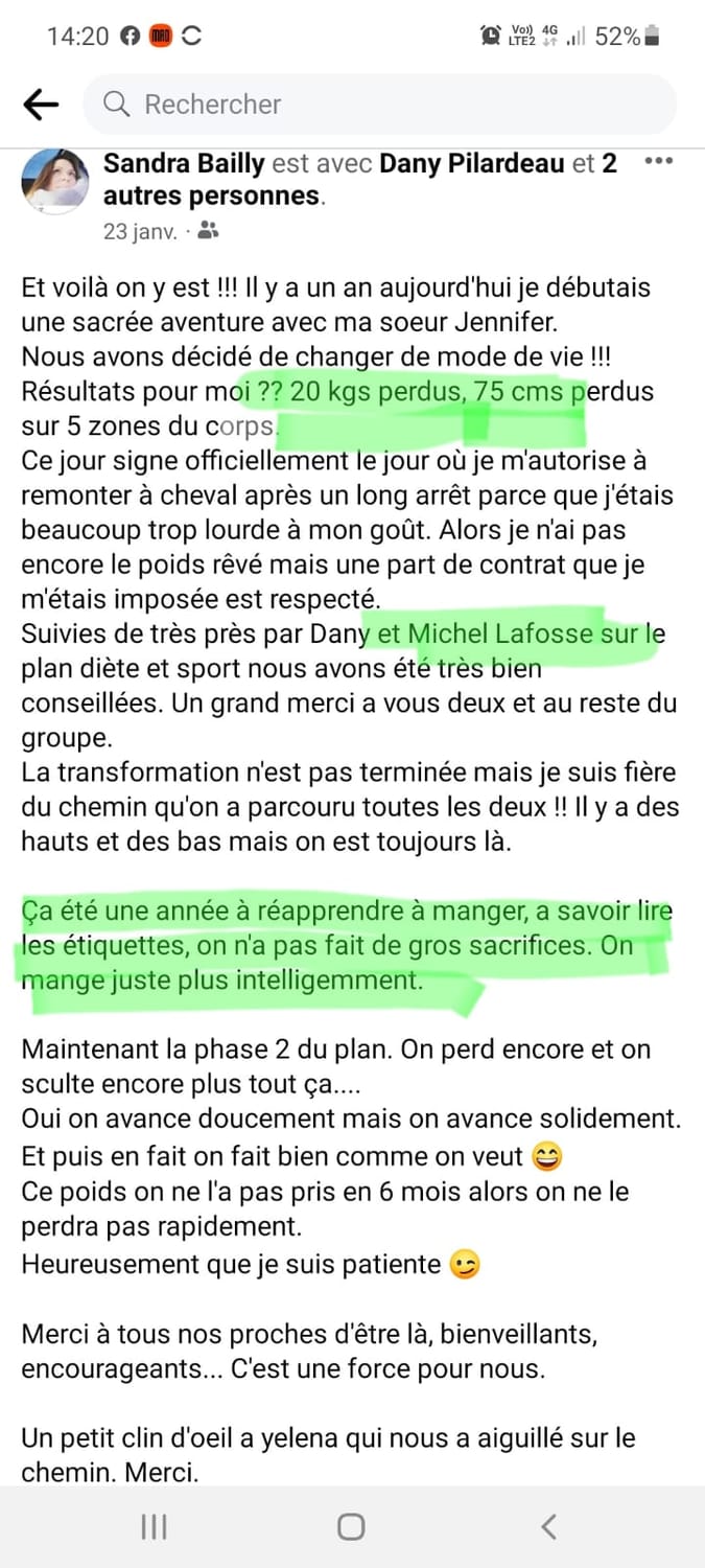 "Je suis à une perte de 13kg, et je maintiens ce poids depuis 1 an."