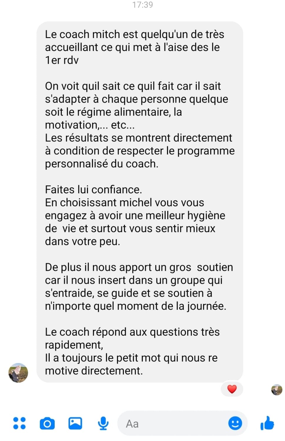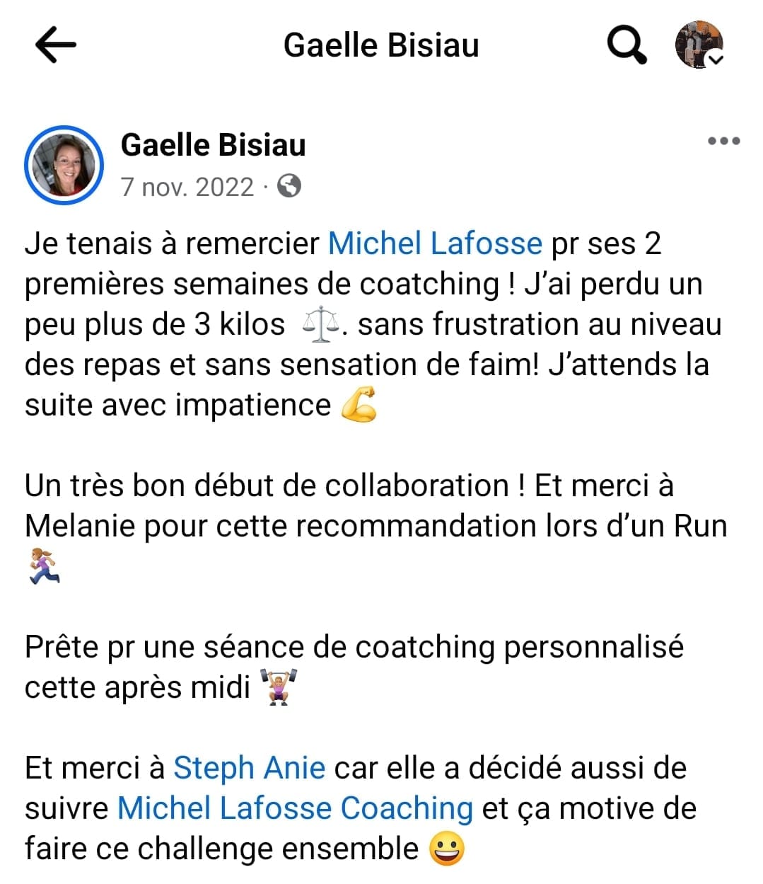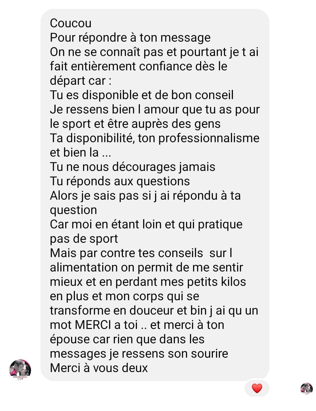 "Après 2 mois dans l''accompagnement, j'ai eu de très bons résultats avec plus de 8kg de perte, j'ai retrouvé la confiance en moi et mes proches le remarquent."