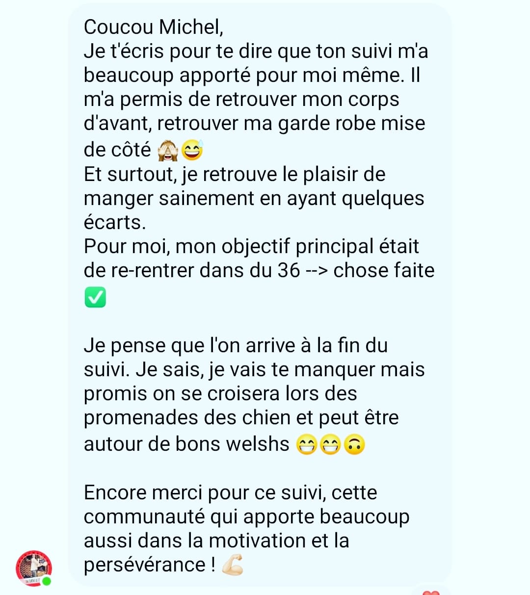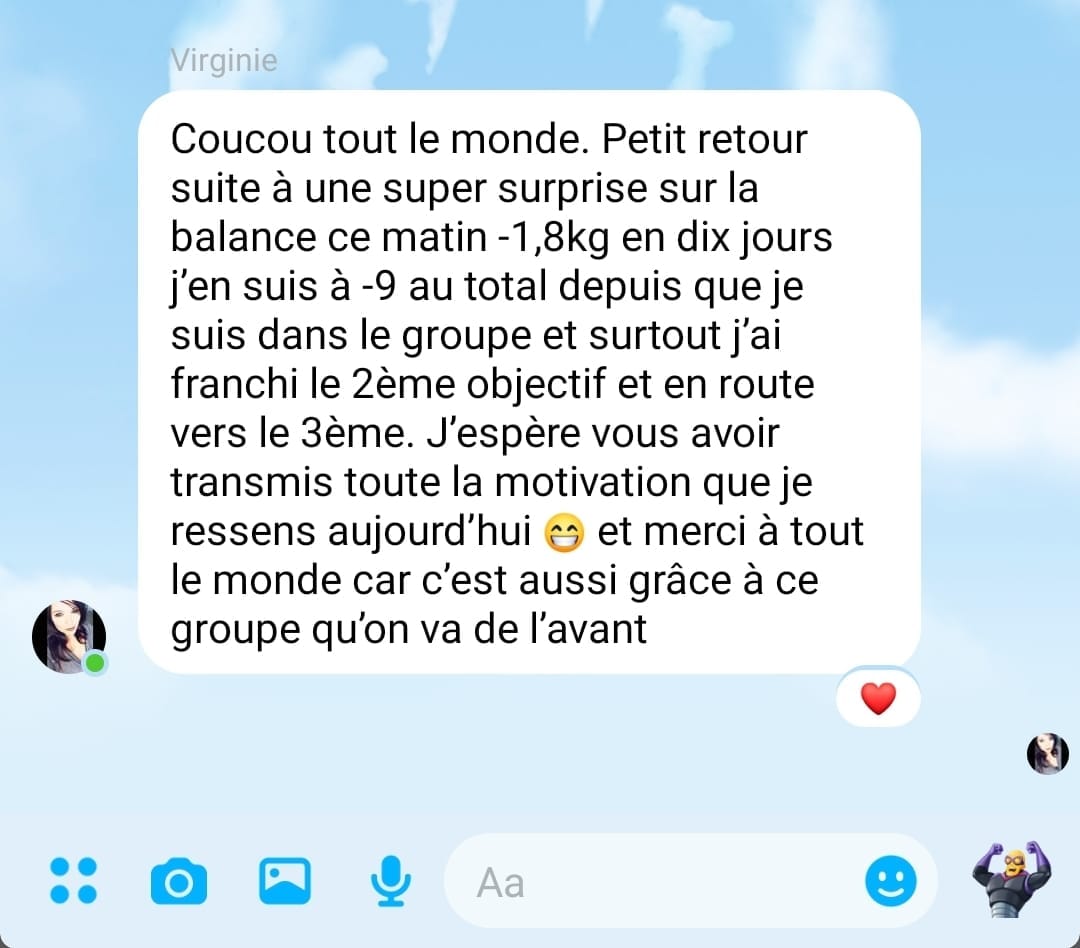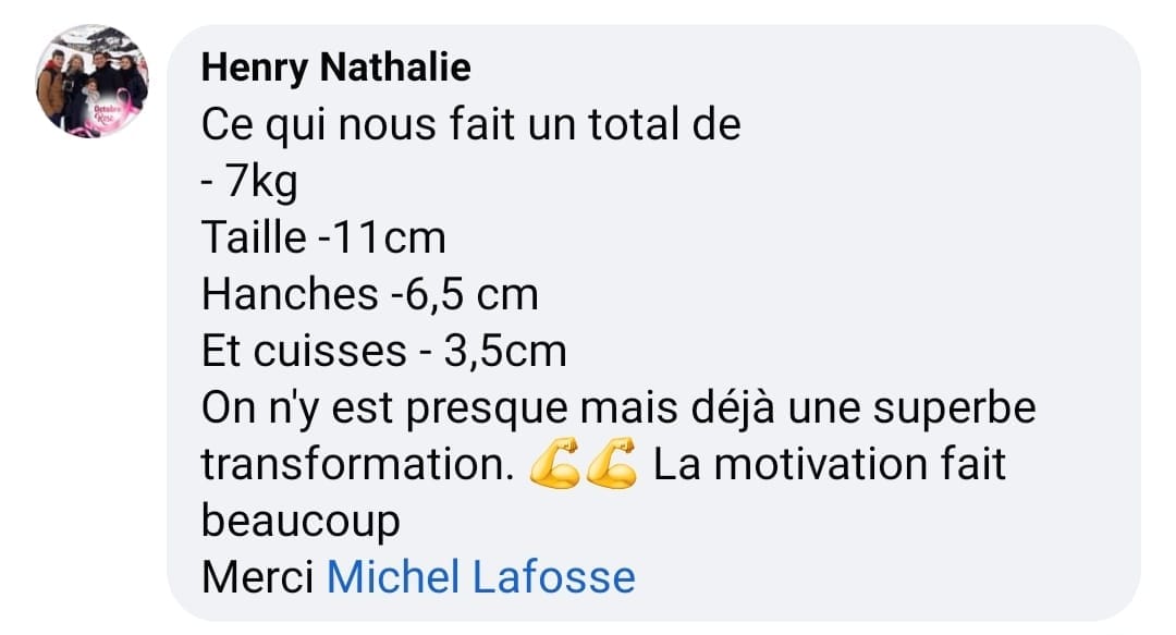 "J'avais un objectif de -8kg en 3 mois, et je l'ai dépassé avec -10kg, -10cm de tour de taille, -8cm de tour de hanche et -5cm de tour de cuisse."